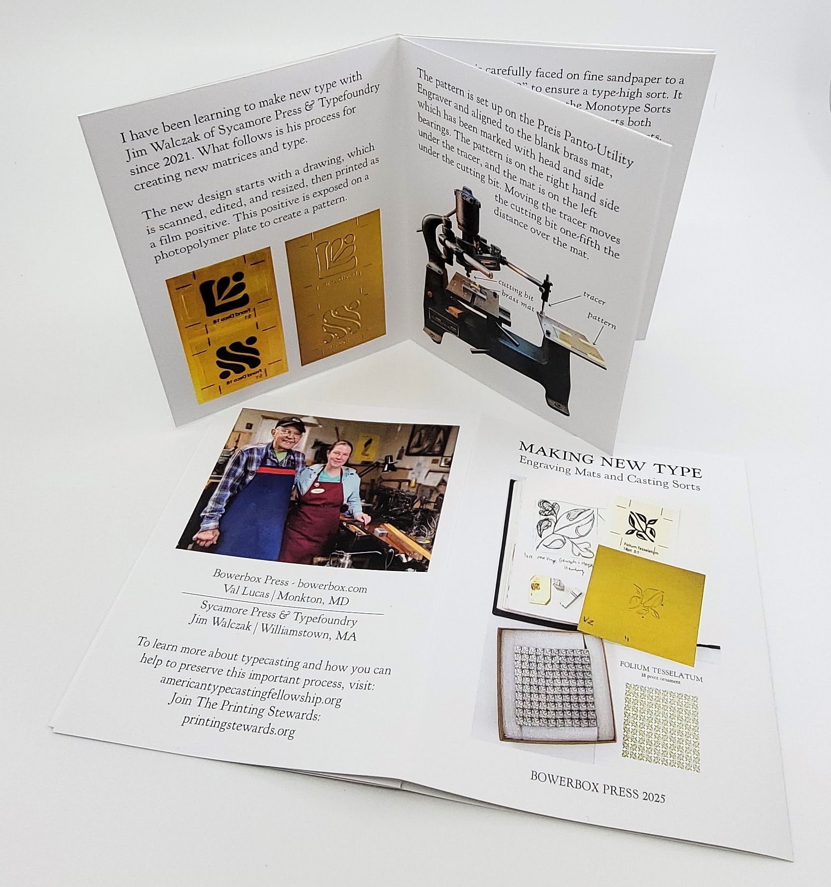 This 8-page zine explains the process of creating a new type design, engraving a brass matrix, and casting type in the Monotype Sorts Caster. This is what I've been learning from Jim Walczak since 2021, and tells the story so far!